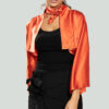 lightweight layering piece with one shiny side and one matte side. silky collar. long sleeves for a chic, adaptable look.